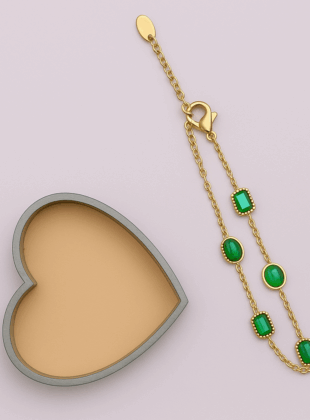 BYKALERS VERDA Bracelet – Gold Stainless Steel with Green Zircon Stones